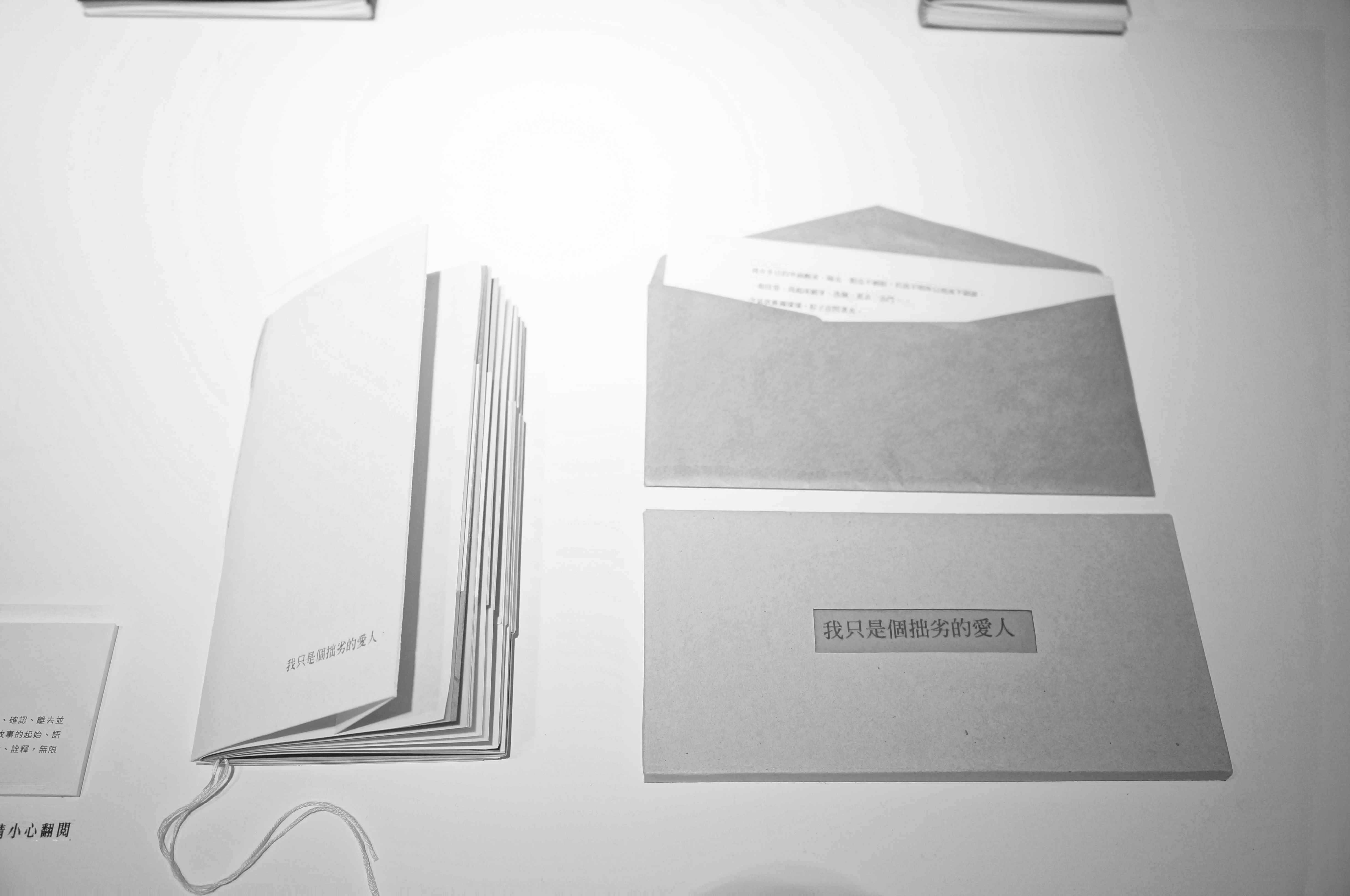 撰寫一則關於情感與關係的故事,文字與圖像相互搭配、詮釋。使用兩種裝幀方式:第一次嘗試將內文各段分別印刷為信箋的大小,置入信封中,整體為「情書」的意象。也因為內文並非裝訂起來,各段落可以散置閱讀,順序各異地詮釋此故事。第二次嘗試將內文裝幀成書,將順序固定下來,然而內文重複兩次,如同將歌曲正播、倒放各一次,試圖將故事的順序做一個無止盡的循環,呼應故事理念。圖像使用拼貼的手法,利用孔版印刷,製造出獨特疊印的印刷質感。